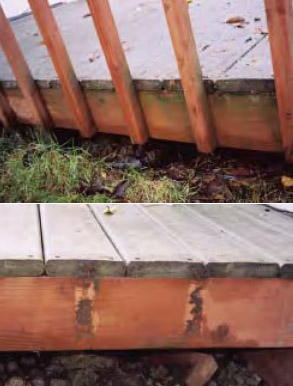 Многие строители прибивают столбики ограждения террасы к обвязке террасы